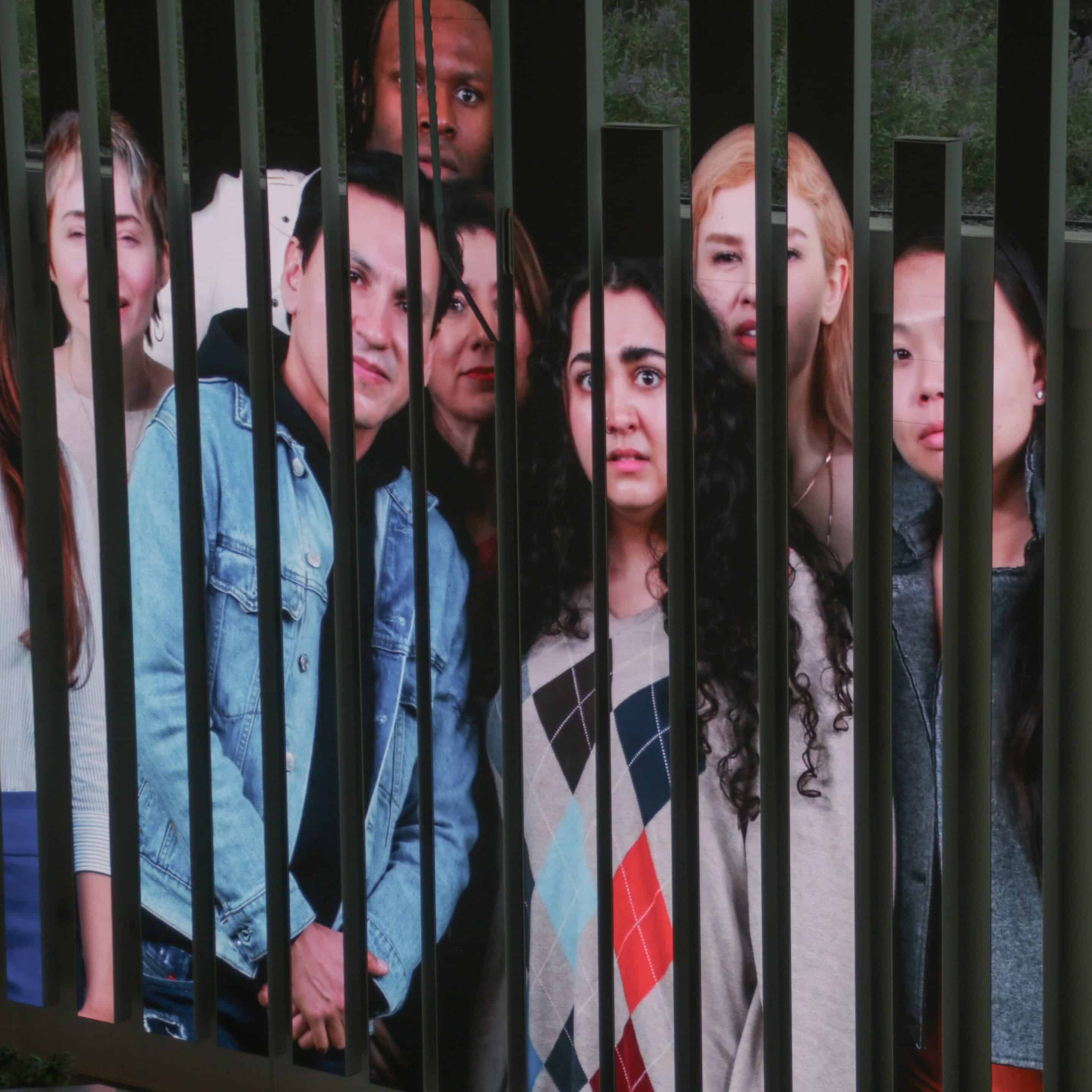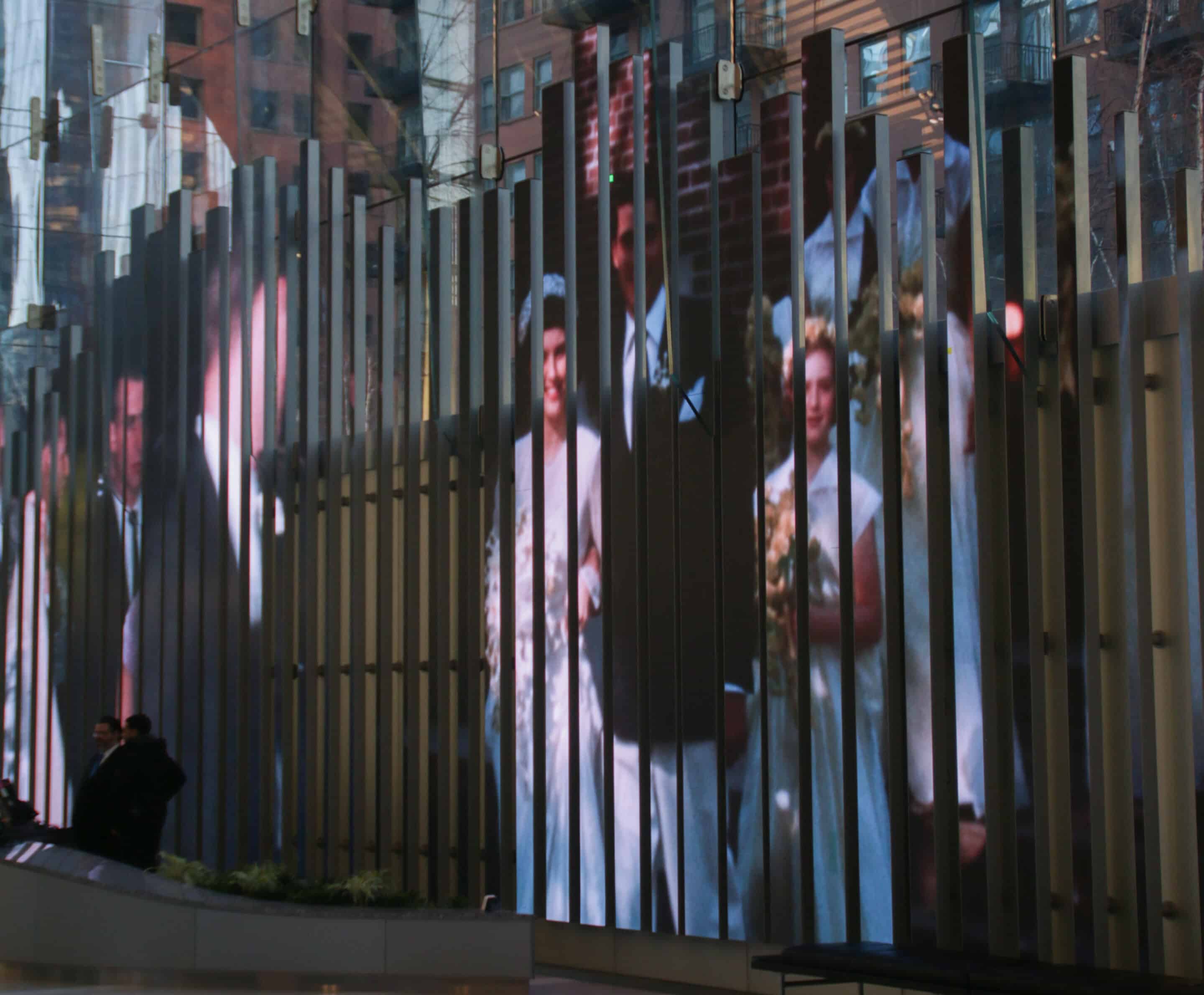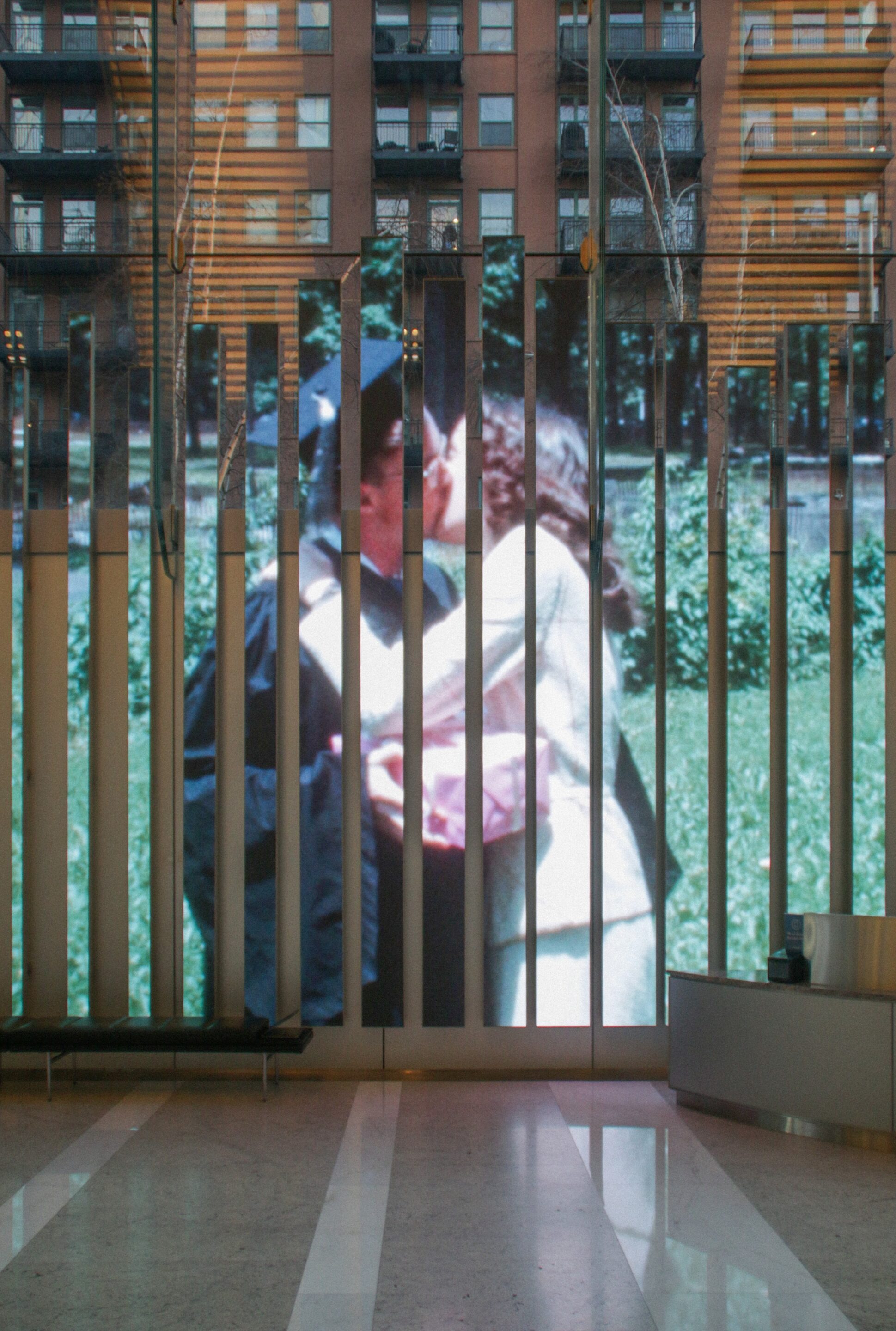 Participants, including building tenants and members of the general public, stepped in front of the artist’s camera and reacted to his directions. This footage was composited into a generative stream of individuals and groups, all staring at something off-screen.