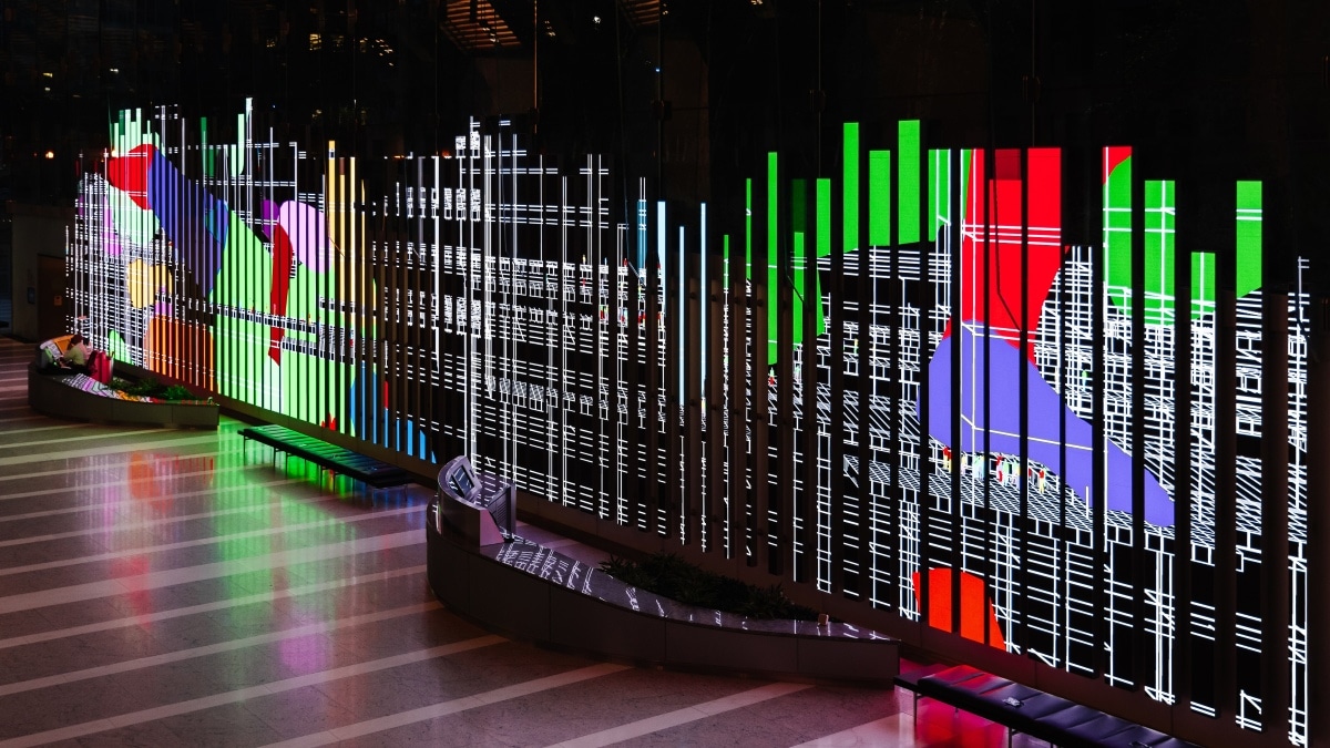 During the reception, which will take place 5:30-7:30pm in the lobby of 150 N Riverside Plaza, our unique media wall will feature two works guest-curated by digital and new media artist Peter Burr. Burr’s own The Continuous Monument, commissioned by 150 Media Stream in 2021, will alternate with French animation artist Boris Labbé’s newly adapted Ito Meikyū, which originally premiered as a virtual-reality work at the 2024 Venice International Film Festival. RSVP to the opening reception here.